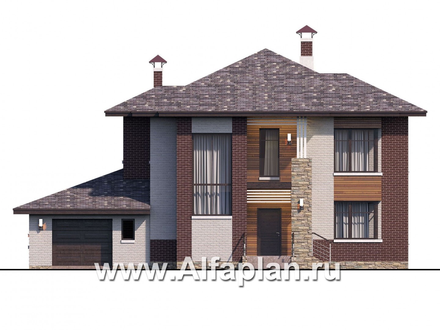 «Эндорфин» - проект двухэтажного дома, в современном стиле, с сауной и с террасой, с гаражом